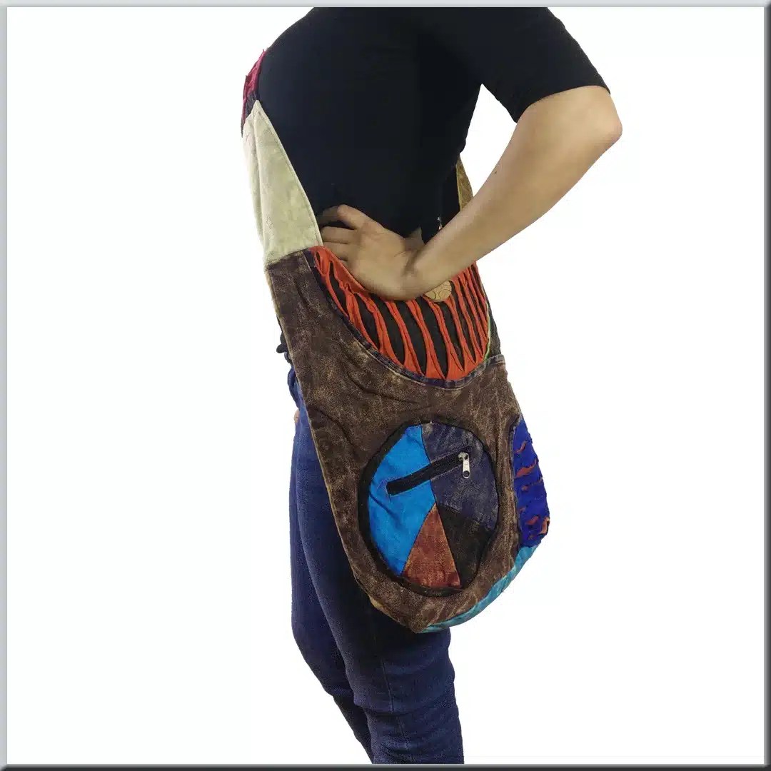 Dieser wundervolle bunte Patchworkeutel ist absoluter Hingucker mit seinem Peace Aufnäher, der gleichzeitig eine kleine Tasche ist.